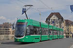 Be 6/8 Combino 307, auf der Linie 8 überquert die Mittlere Rheinbrücke.