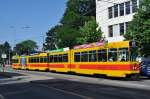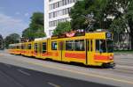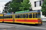 Be 6/8 Combino 318, auf der Linie 8, verlässt die Haltestelle CIBA. Die Aufnahme stammt vom 12.07.2018.