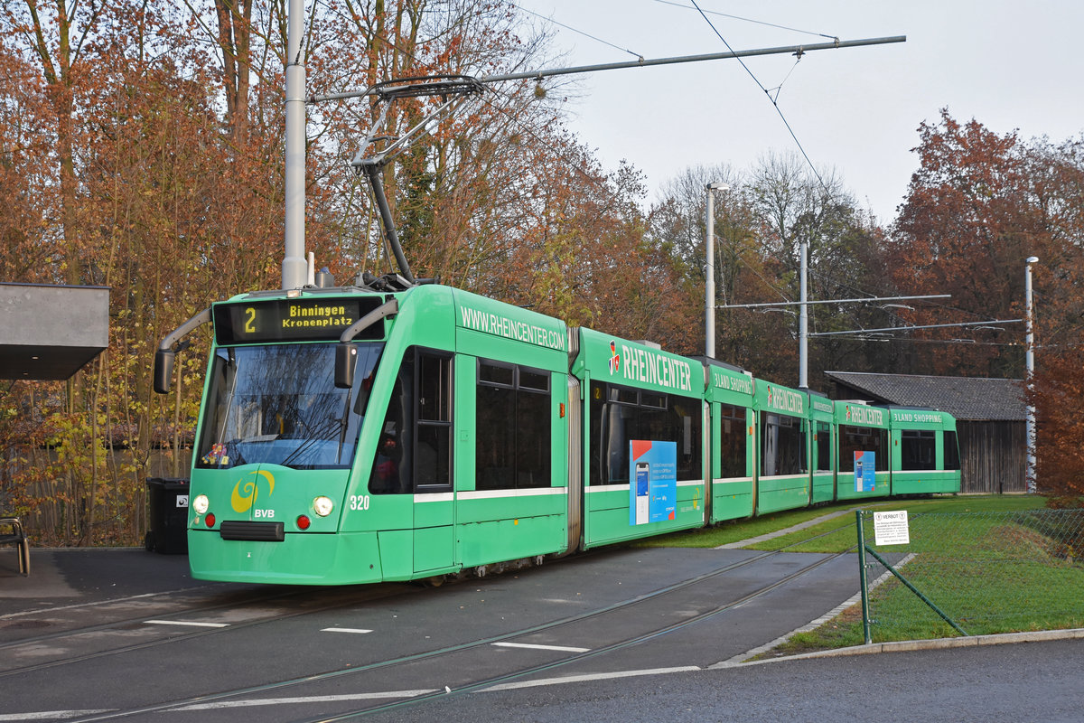 Be 6/8 Combino 320, auf der Linie 2, wartet in der Schlaufe beim Eglisee. Die Aufnahme stammt vom 28.11.2018.