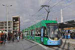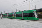 Be 6/8 Flexity 5041 mit der SALT Werbung, auf der Linie 3, wartet an der Endstation beim Bahnhof Saint Louis.