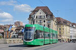 Be 4/6 Flexity 6004, auf der Linie 15, überquert die Mittlere Rheinbrücke.