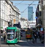 Be 6/8 Flexity 5031, auf der Linie 14, überquert die Mittlere Rheinbrücke. Die Aufnahme stammt vom 06.03.2019.