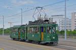 Be 6/8 Flexity 5011, auf der Linie 14, überquert die Dreirosenbrücke.