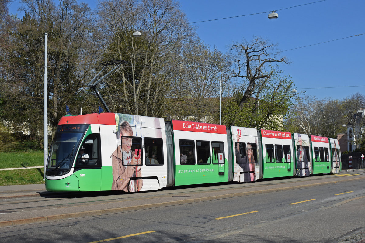 Be 6/8 Flexity 5012 mit der U-Abo Werbung, auf der Linie 3, bedient die Haltestelle St. Alban Tor. Die Aufnahme stammt vom 29.03.2019.