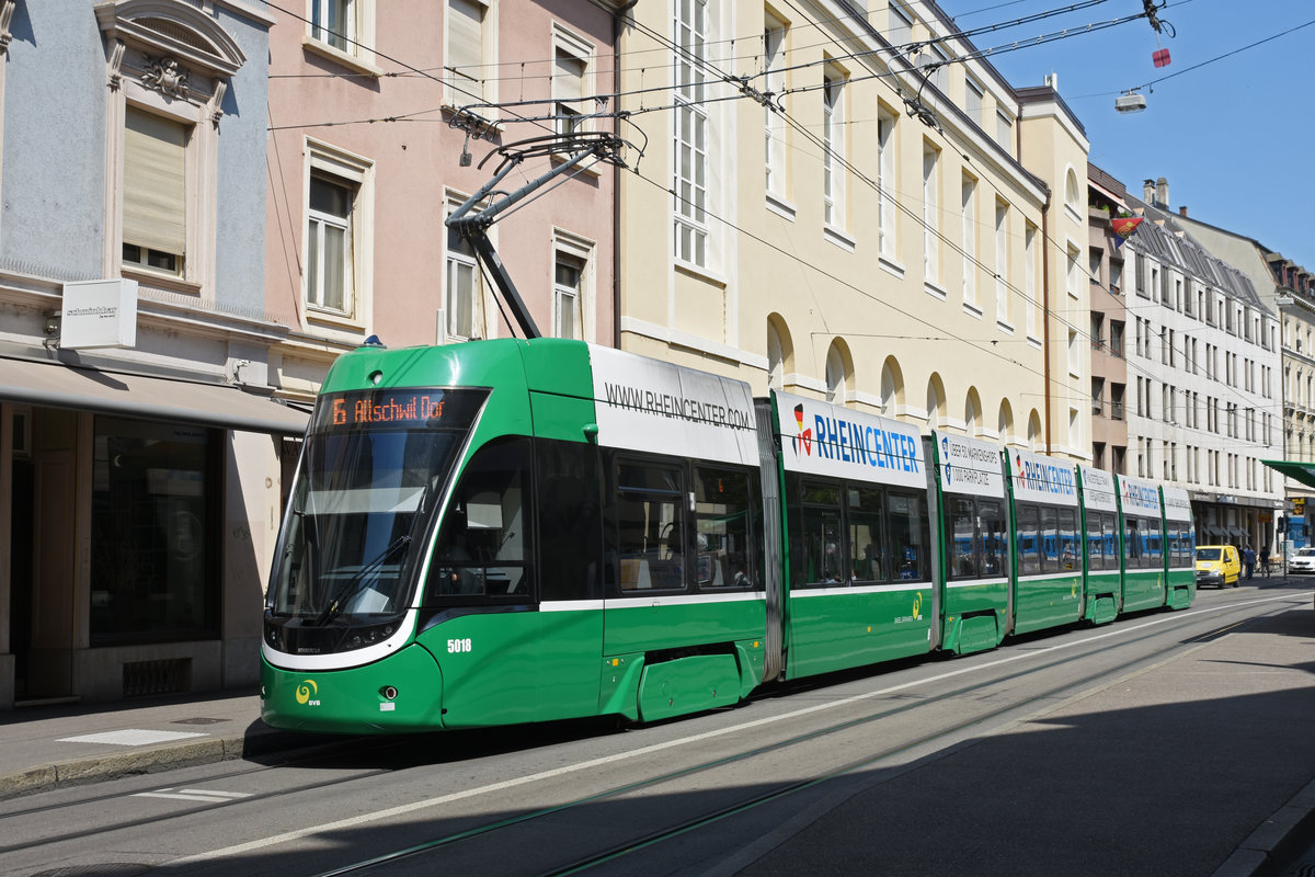 Be 6/8 Flexity 5018, auf der Linie 6, bedient die Haltestelle Theater.