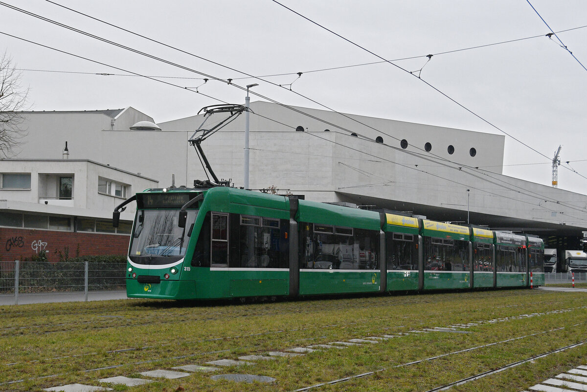 Am 07.12.2019 fand die Santiglausenfahrt des Tramclub Basel statt. Der zweite Halt gab es bei der Endstation der Linie 14 in Pratteln. Hier sehen wir den Be 2/2 215 mit dem B2 423.