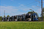 Be 6/8 Flexity 5003 mit der Werbung für den Wohnpark Binzen, auf der Linie 14, fährt am 15.12.2025 zur Haltestelle Lachmatt. Aufnahme Pratteln.