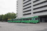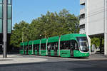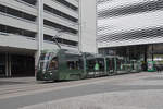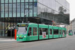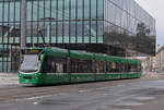 Doppeltraktion, mit dem Be 4/4 481, dem B4S 1449 und dem Be 4/4 492, auf der Linie 6, fährt zur Haltestelle Messeplatz. Die Aufnahme stammt vom 19.01.2021.