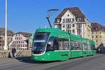 Be 6/8 Flexity 5014 mit der Denner Werbung, auf der Linie 14, überquert die Mittlere Rheinbrücke. Die Aufnahme stammt vom 12.12.2021.