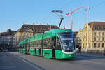 Be 6/8 Flexity 5033 mit der BLKB Werbung, auf der Linie 6, überquert die Mittlere Rheinbrücke.