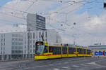 Be 6/8 Flexity 5031 mit der C&A Werbung, auf der Linie 2, wartet in der Schlaufe beim Eglisee.