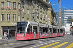Be 6/8 Flexity 5014 mit der Denner Werbung, auf der Linie 14, wartet am 19.07.2022 an der Endstation in Pratteln.