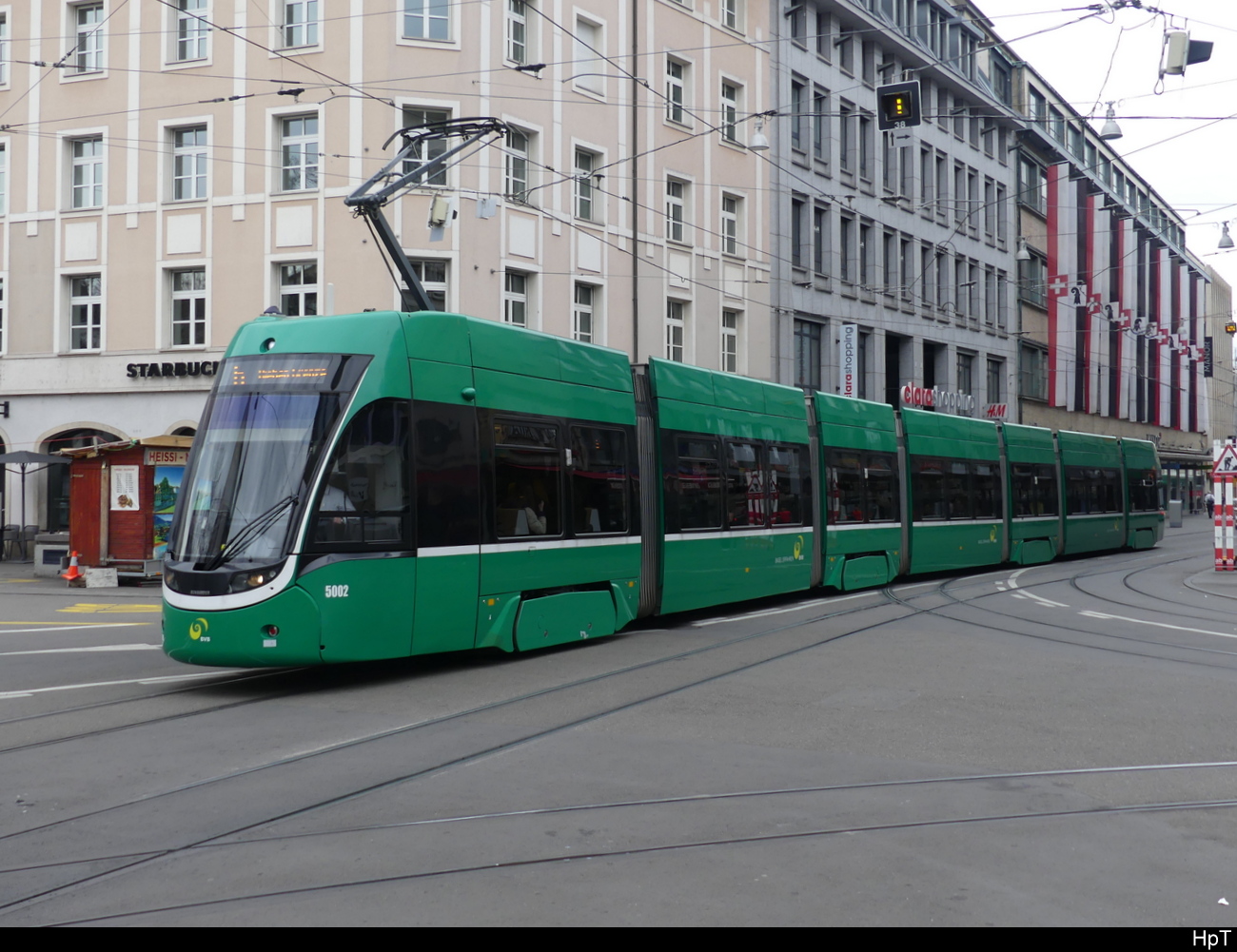 BVB - Tram Be 6/8 5002 unterwegs in Basel am 19.03.2023