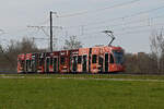 Be 6/8 Flexity 5003 mit der Werbung für den Wohnpark Binzen, auf der Linie 14, fährt am 15.12.2025 zur Haltestelle Lachmatt. Aufnahme Pratteln.