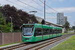 Be 4/6 Flexity 6011 mit der Werbung für die Konfitüre von Zuegg, auf der wegen einer Baustelle umgeleiteten Linie 3, fährt am 07.04.2026 zur Haltestelle am Aeschenplatz. Aufnahme Basel.