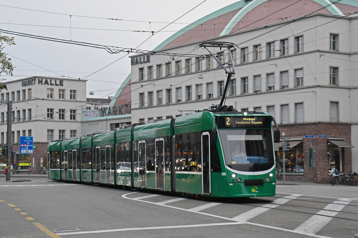 Be 6/8 Combino 325, auf der Linie 8, fährt am 19.02.2024 zur Haltestelle am Bahnhof SBB.