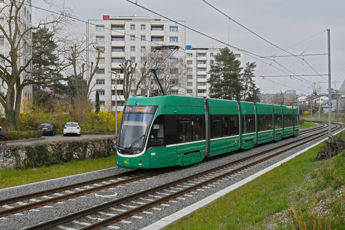 Be 6/8 Flexity 5030, auf der Linie 14, fährt am 08.03.2024 zur Haltestelle Käppeli.