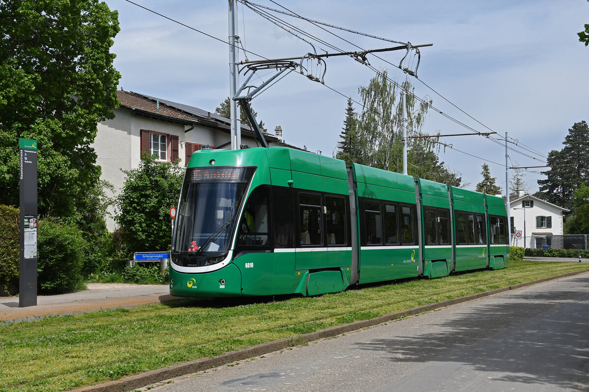 Be 4/6 Flexity 6010, auf der Linie 16, fährt am 04.05.2024 bei der Haltestelle Hauensteinstrasse ein.