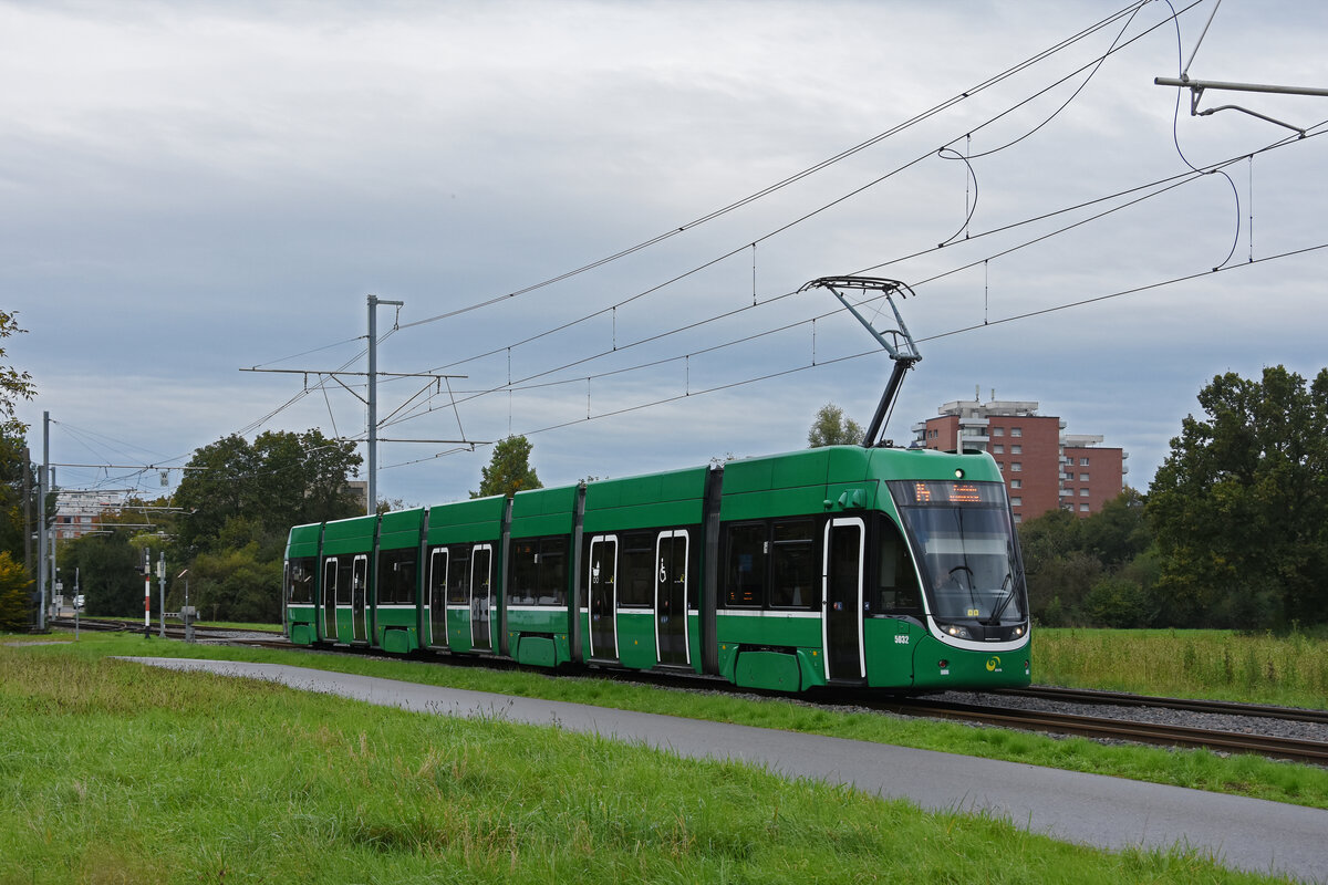 Be 6/8 Flexity 5032, auf der Linie 14, fährt am 07.10.2024 zur Haltestelle Lachmatt. Aufnahme Muttenz.