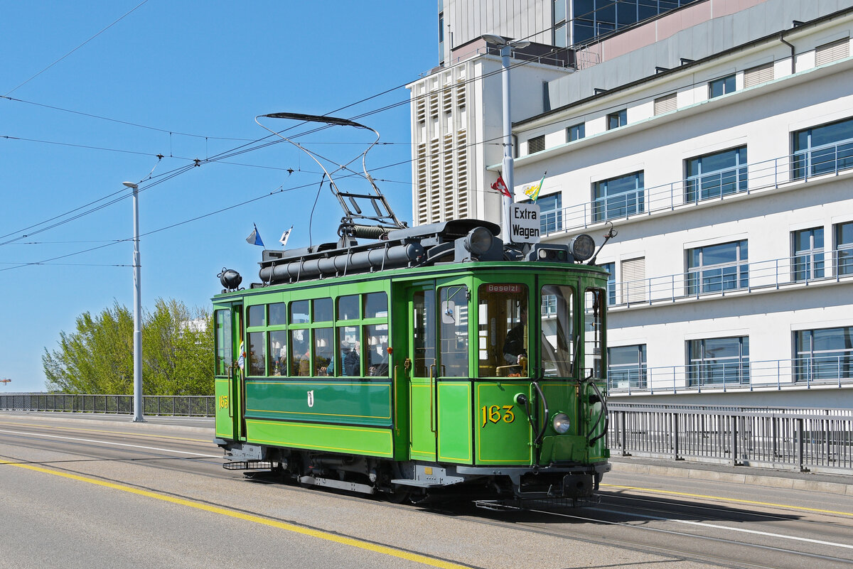 Ce 2/2 163 überquert am 07.04.2025 auf einer Extrafahrt die Dreirosenbrücke.