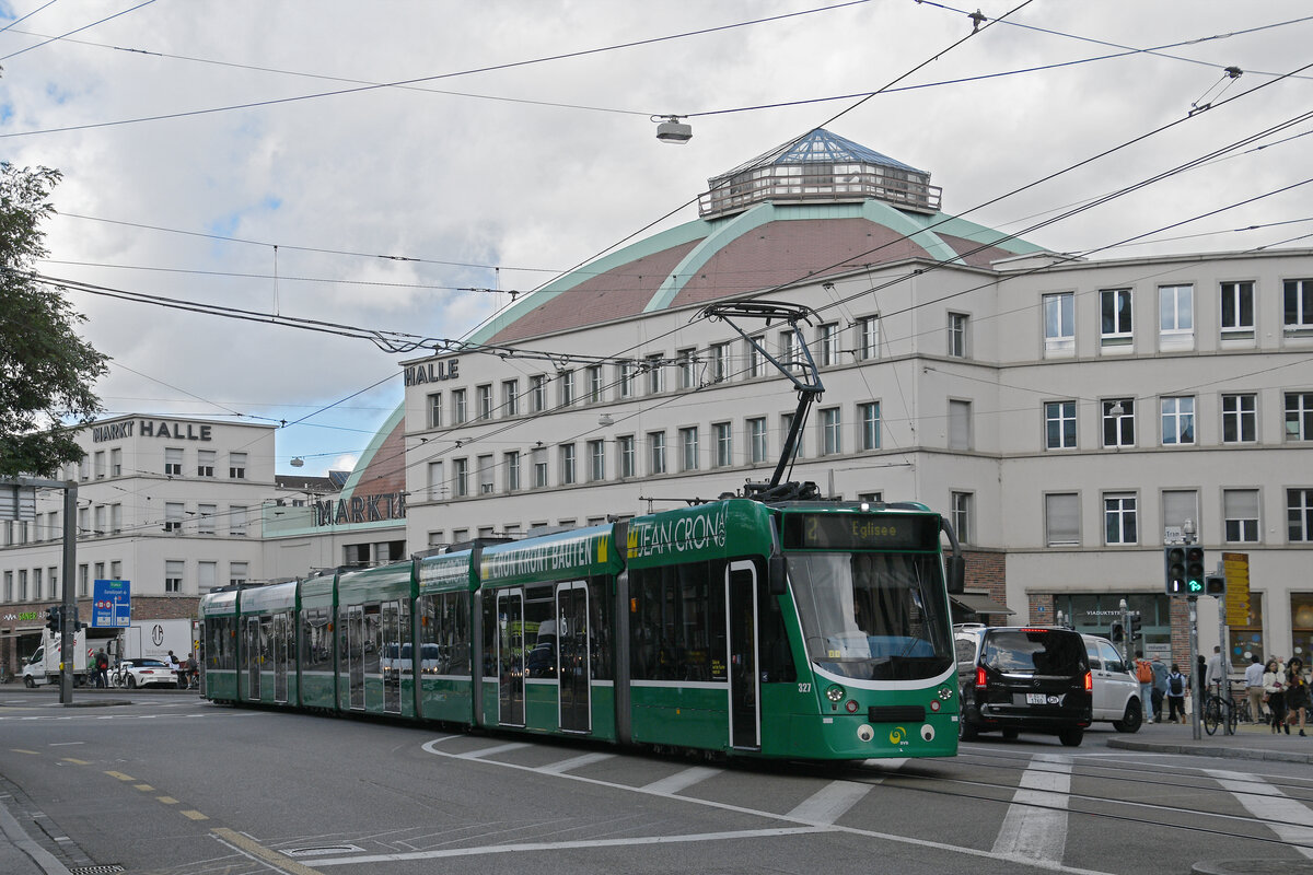 Be 6/8 Combino 327, auf der Linie 2, fährt am 05.09.2025 zur Haltestelle am Bahnhof SBB. Aufnahme Basel.