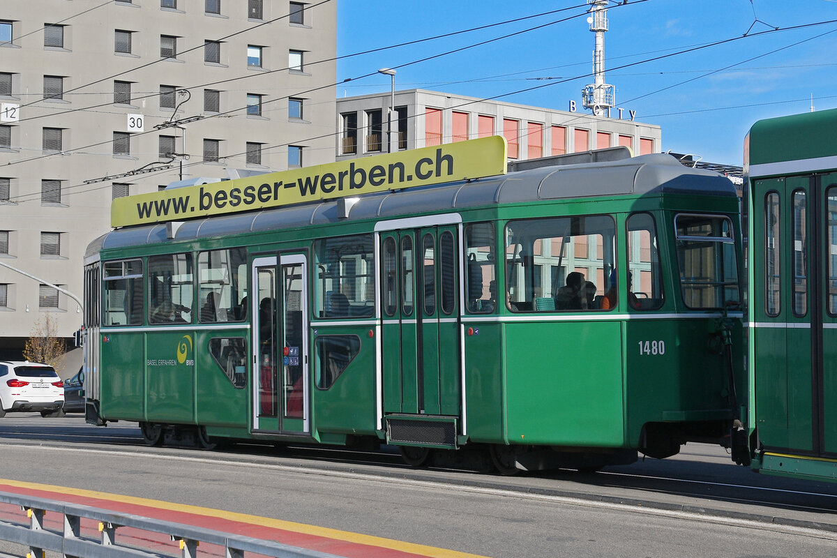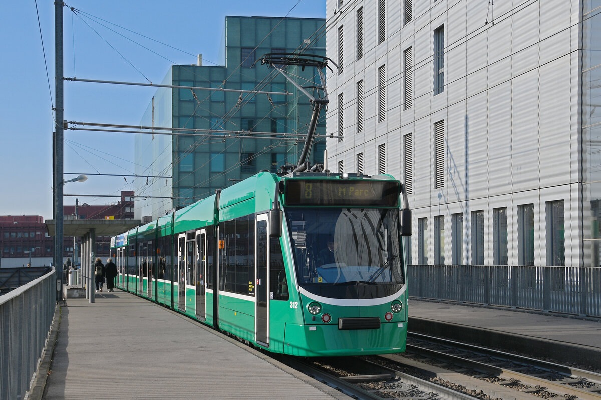 Be 6/8 Combino 312, auf der wegen einer Baustelle umgeleiteten Linie 8, bedient am 19.01.2026 die Haltestelle Peter Merian. Aufnahme Basel. Markus Wagner