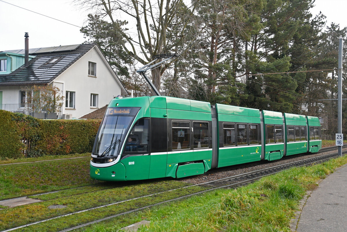 Be 4/6 Flexity 6010, auf der Linie 15, fährt am 22.12.2025 zur Haltestelle Lerchenstrasse. Aufnahme Basel.