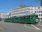 Be 2/2 163 und B2 371 und dem Sommeranhänger 1077 am Wettsteinplatz in Basel.