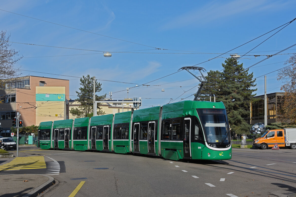 Be 6/8 Flexity 5012, auf der Linie 8, fährt am 10.11.2025 zur Haltestelle CIBA. Aufnahme Basel.