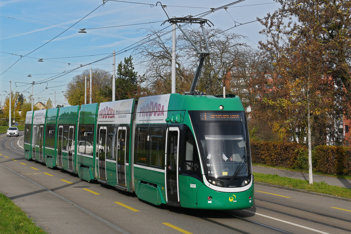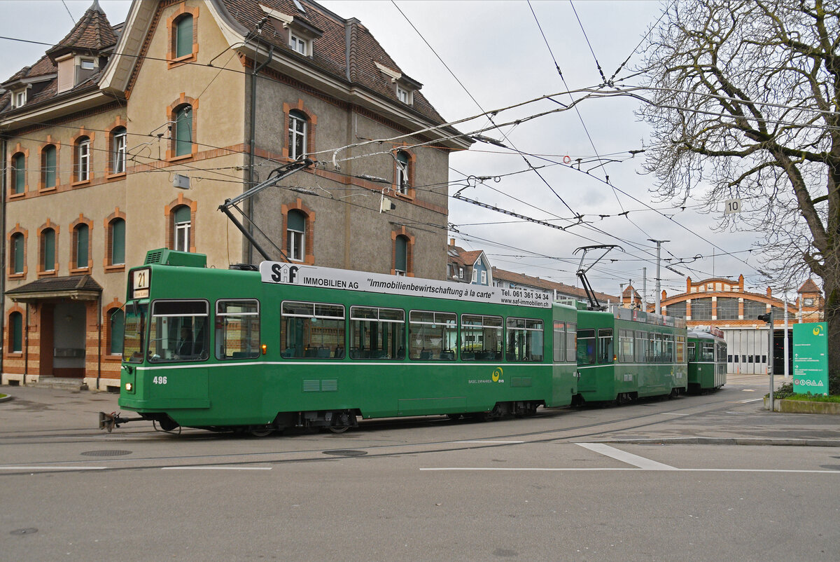 Be 4/6S mit der Betriebsnummer 684 und der B4 1448, der von Kindern bemalt wurde, fährt auf der Linie 14 Richtung Haltestelle Hardstrasse. Die Aufnahme stammt vom 29.09.2011.