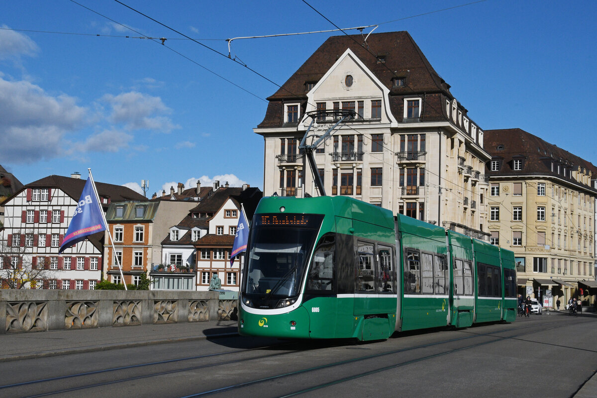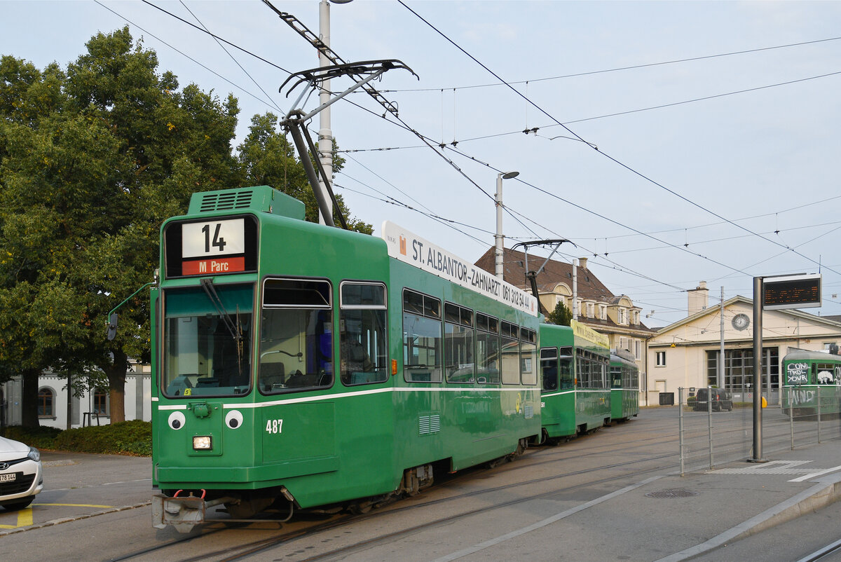 Die Linie 14 fährt am Fasnachts Dienstag von Muttenz bis zum M-Parc. Hier sehen wir einen Kurs mit dem Be 4/6S 661 und der Vollwerbung für die kommende MUBA auf der Linie 14 vor der Einfahrt zum Bahnhof SBB. Die Aufnahme stammt vom 28.02.2012.