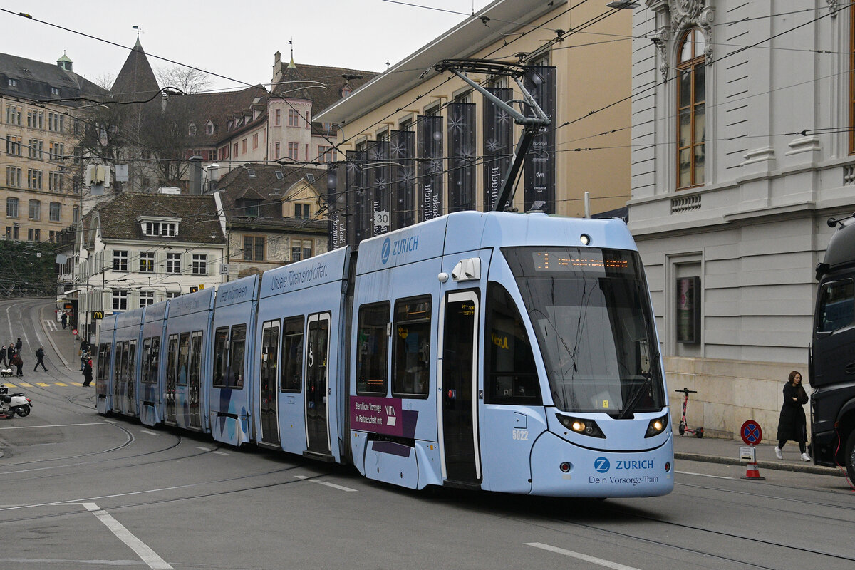 Be 4/4 mit der Betriebsnummer 461 und der B4 1469 und der Vollwerbung für den Designer Michael Kors fährt zur Haltestelle Lerchenstrasse auf der Linie 15. Die Aufnahme stammt vom 12.03.2012.
