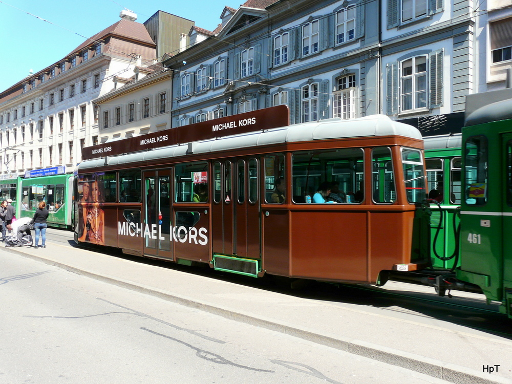 BVB - Trambeiwagen mit Werbung B 1469 unterwegs in Basel am 04.05.2012