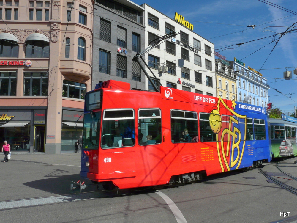 BVB - Tram Be 4/4 490 mit Werbung  unterwegs in Basel am 04.05.2012