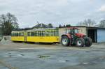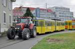 Be 2/2 mit der Betriebsnummer 126 und der B2 309 auf dem Hof des Depots Dreispitz. Die Aufnahme stammt vom 20.05.2012.
