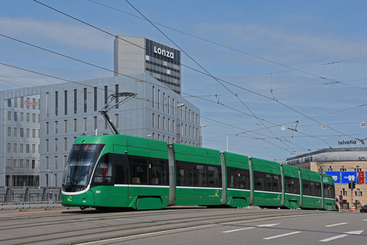 Dreiwagenzug mit dem Be 4/4 477, dem B4S 1470 und dem Be 4/4 475 auf der Linie 3 fahren den Steinenberg hinunter zur Haltestelle Barfüsserplatz. Die Aufnahme stammt vom 09.06.2012.