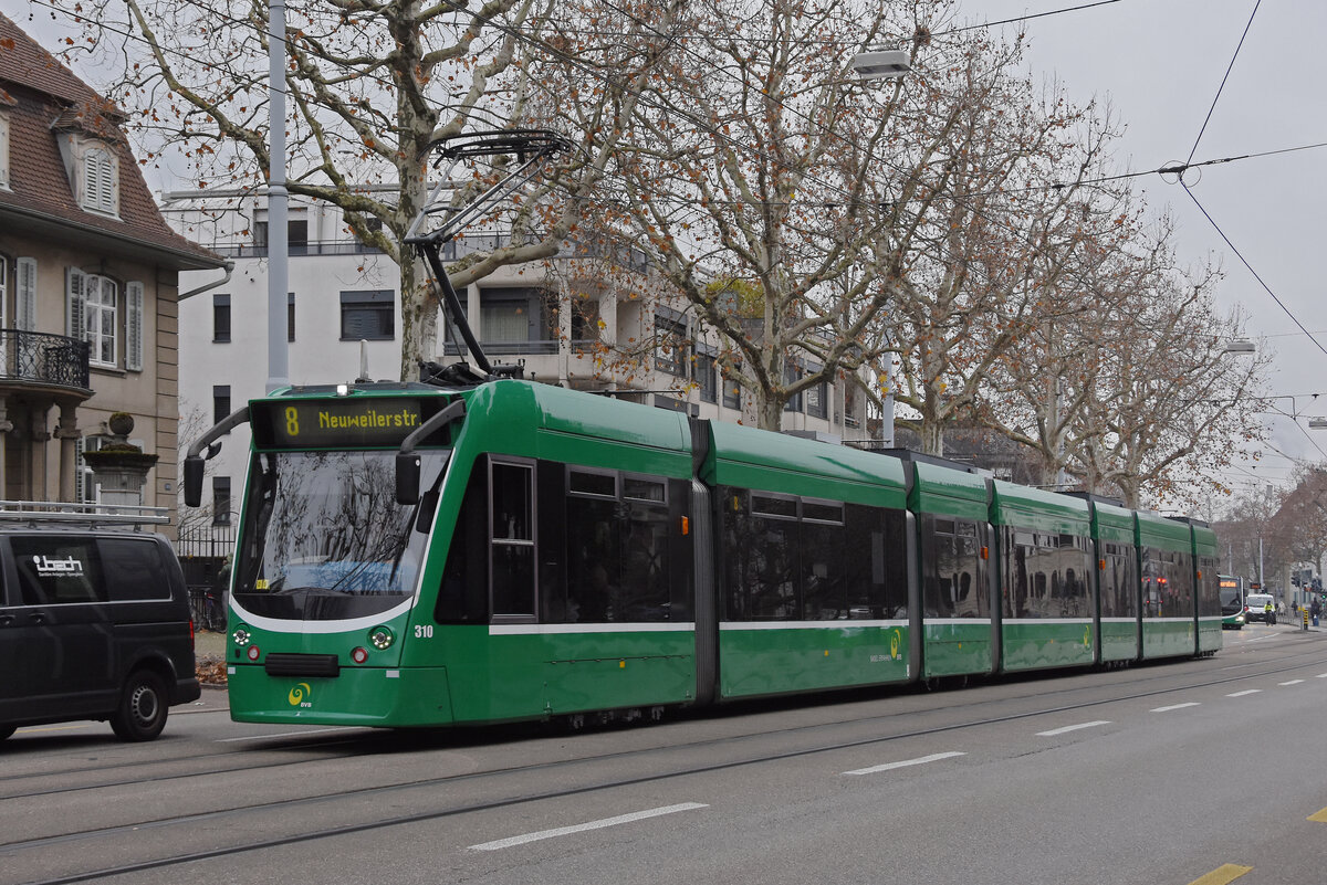 Be 6/8 Combino 310, auf der Linie 8, fährt am 22.11.2025 zur Haltestelle Schützenhaus. Aufnahme Basel.