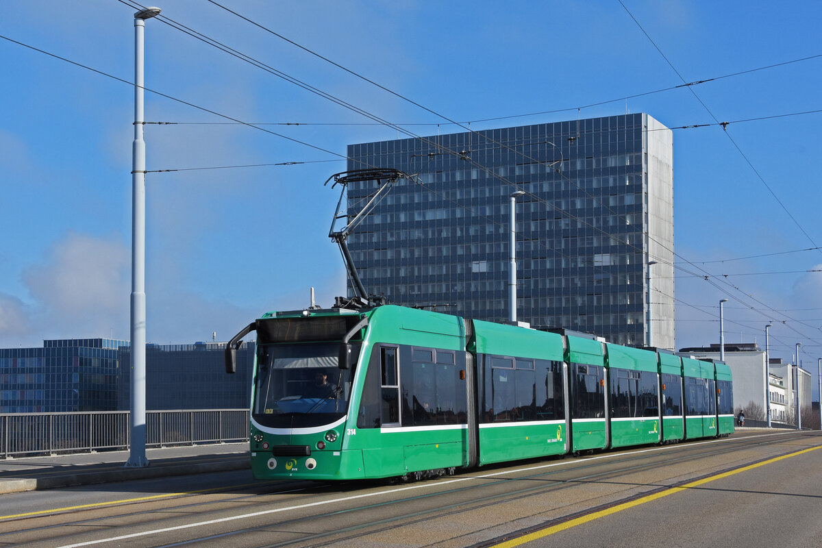 Be 6/8 Combino 314, auf der Linie 1, überquert am 18.11.2025 die Dreirosenbrücke. Aufnahme Basel.