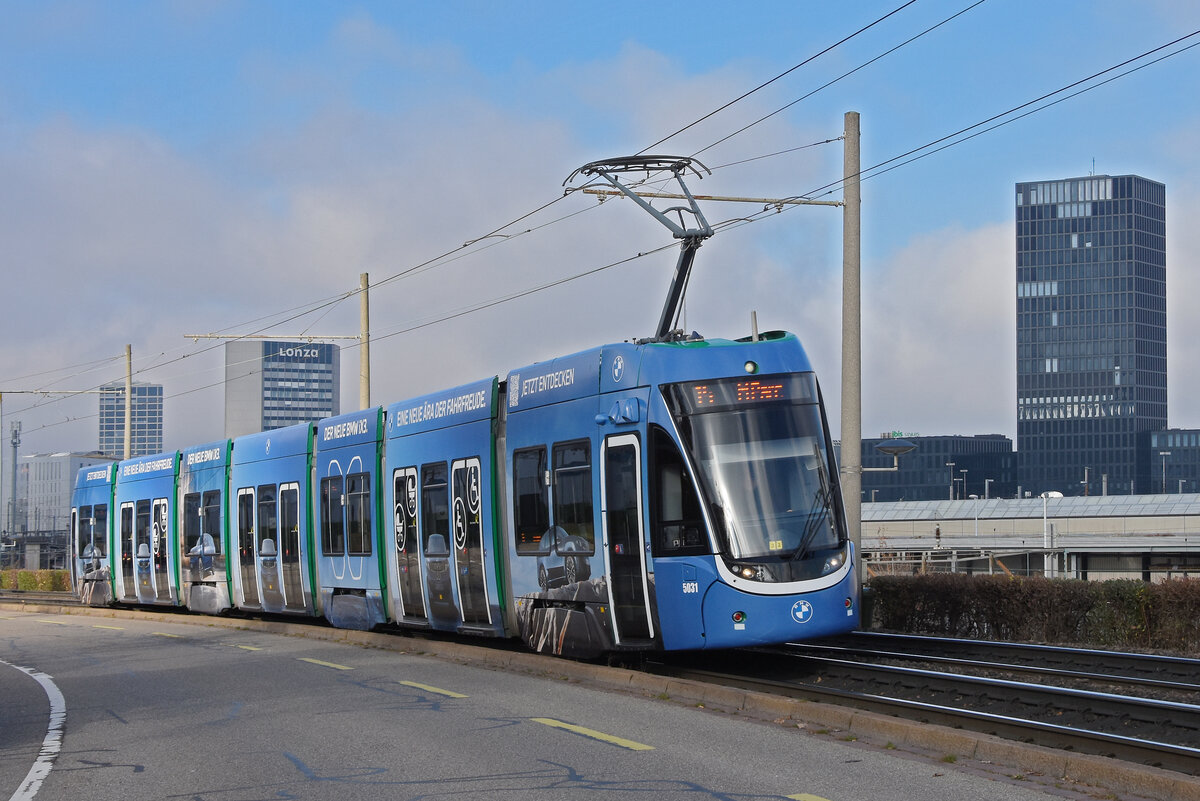 Be 6/8 Flexity 5031, auf der wegen einer Grossbaustelle umgeleiteten Linie 14, fährt am 18.11.2025 zur Endstation beim Depot Dreispitz. Aufnahme Basel.
