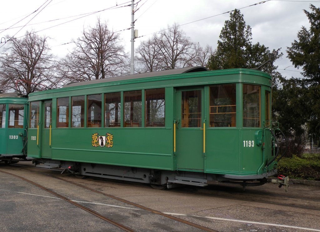 Der B 1193 wurde im November 1927 in Betrieb genommen. Der Anhänger ist bis heute als Oldtimer für Extrafahrten im Einsatz. Die Aufnahme stammt vom 23.12.2012.