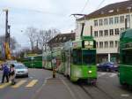 Be 6/8 Flexity 5003 mit der Werbung für den Wohnpark Binzen, auf der Linie 14, fährt am 15.12.2025 zur Haltestelle Lachmatt. Aufnahme Pratteln. Markus Wagner