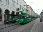 Be 4/6 Flexity 6014, auf der wegen einer Baustelle umgeleiteten Linie 15, fährt am 02.09.2025 zur Haltestelle Messeplatz. Aufnahme Basel. Markus Wagner