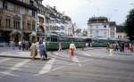 Basel BVB Tram 15 (Be 4/4 466) Barfüsserplatz am 21. Juli 1981.