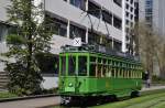 Sonder Aktion der BVB für den FC Basel, der am 02. Mai 2013 in London das Rückspiel im UEFA Europa League 1/2 Final gegen den FC Chelsea bestreitet. An allen Trams und Bussen wurden diese Kleber mit der Aufschrift Hopp FCB! Mir drugge Euch dr Duume!, angebracht. Die Aufnahme stammt vom 20.05.2013.