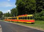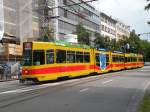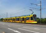 Ausnahmsweise wurde am 01.07.2013 der Combino 321 auf der Linie 1/14 eingesetzt. Hier steht der Wagen an der Endhaltestelle der Linie 1 am Badischen Bahnhof.