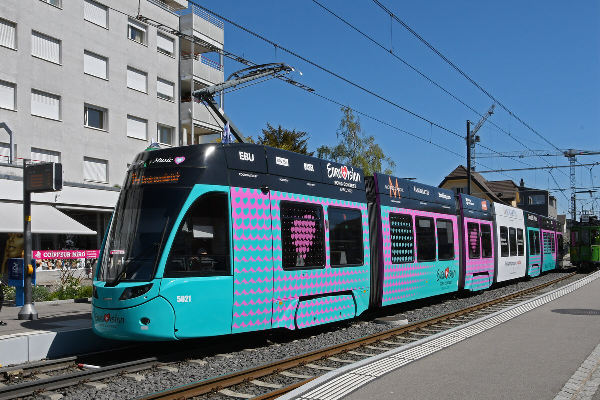 Be 6/8 Flexity 5003 mit der Werbung für den Wohnpark Binzen, auf der Linie 14, fährt am 15.12.2025 zur Haltestelle Lachmatt. Aufnahme Pratteln.