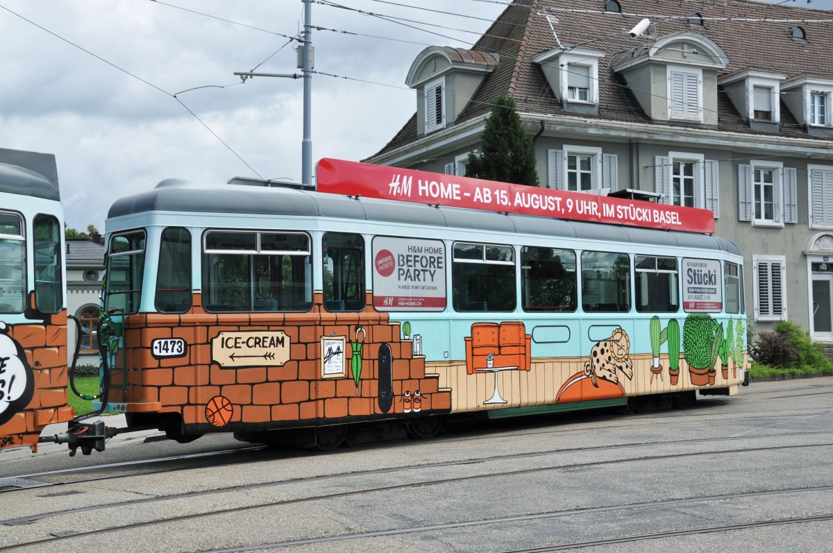 B 1473 mit der Graffiti Werbung für H&M Home steht beim Depot Dreispitz. Die Aufnahme stammt vom 16.08.2014.