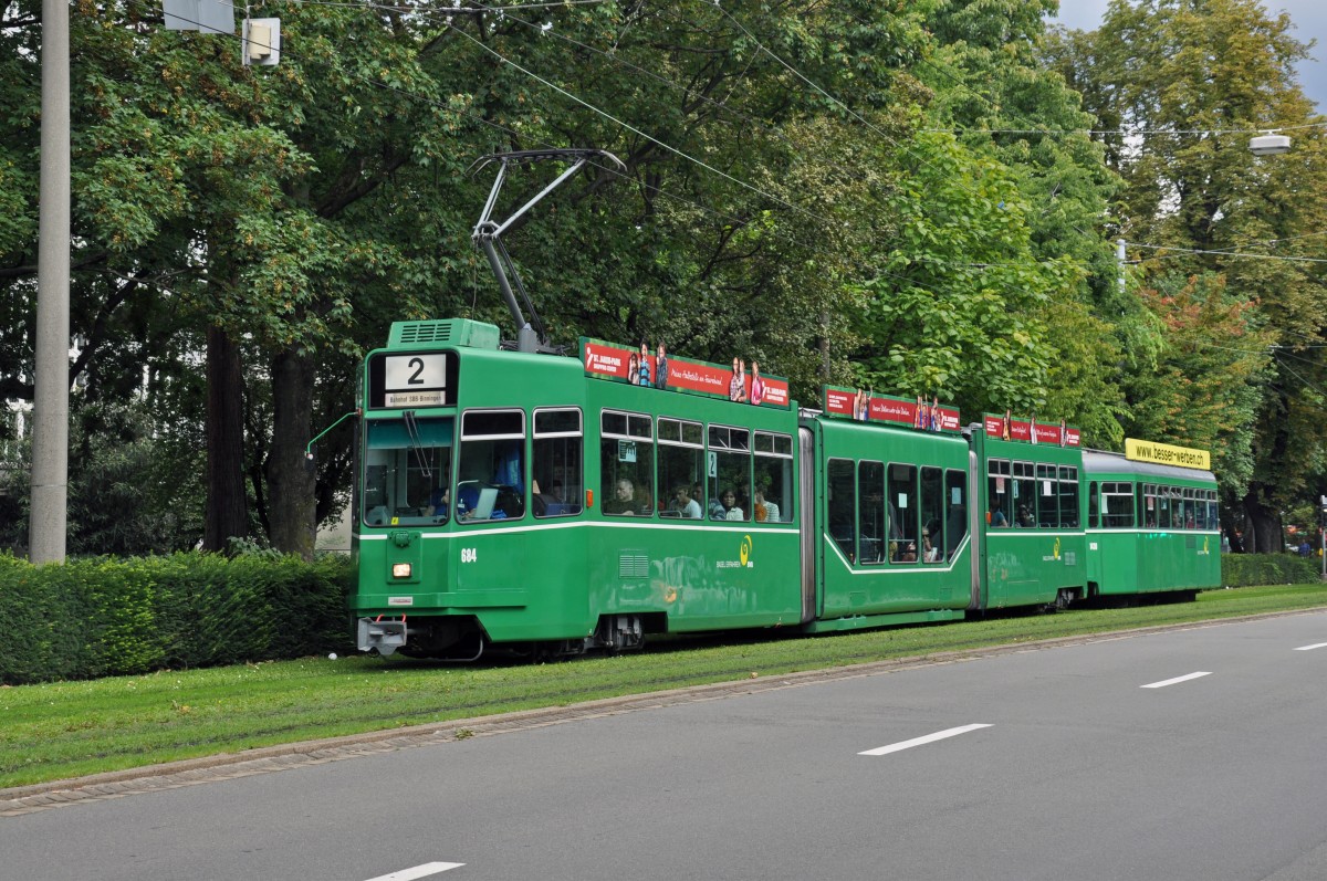 Be 4/6 S 684 zusammen mit dem B 1430 auf der Umgeleiteten Linie 2 im Aeschengraben. Die Aufnahme stammt vom 16.08.2014.