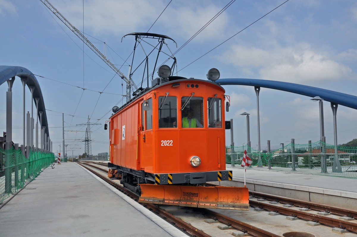 Am Nachmittag des 02.10.2014 fährt der Xe 2/2 2022 auch nach Weil am Rhein. Hier ist der Schneepflug an der Endstation in Weil am Rhein angekommen.