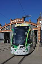 Be 6/8 Flexity 5009 mit der Werbung für einen Pferdeanlass im St. Jakob, auf der Linie 14, fährt am 07.04.2026 zur Haltestelle Lachmatt. Aufnahme Pratteln.